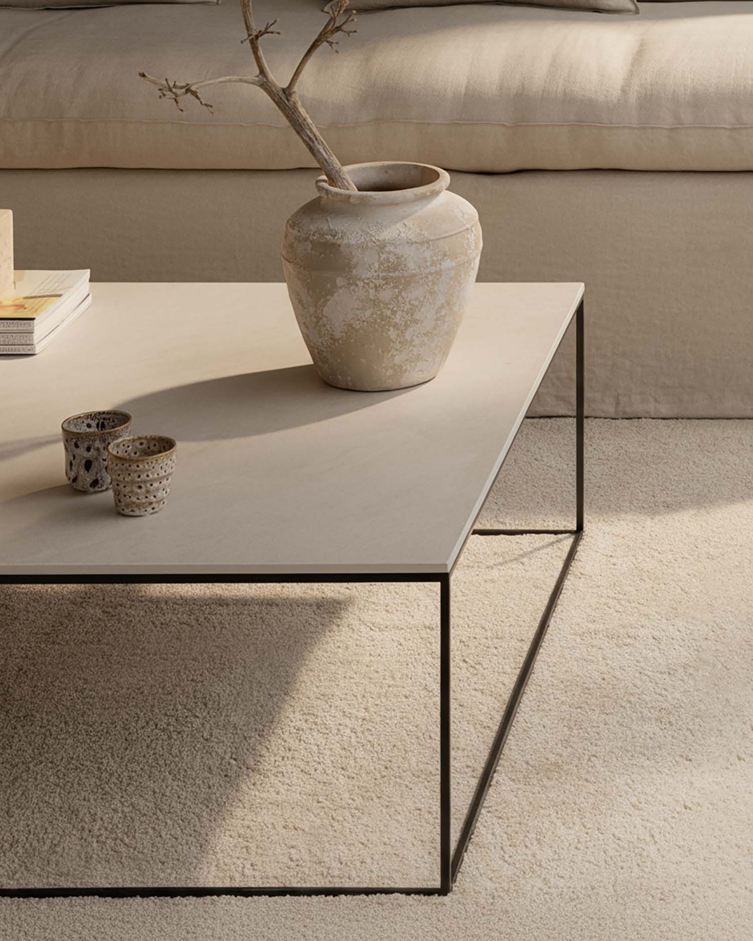La colección Petra equilibra diseño y funcionalidad con una estética ligera y sofisticada. Su estructura metálica, delicada pero firme, se complementa con sobres en materiales nobles como nogal, roble o porcelánico. Una familia de piezas que transforma cualquier espacio con un toque de elegancia natural.