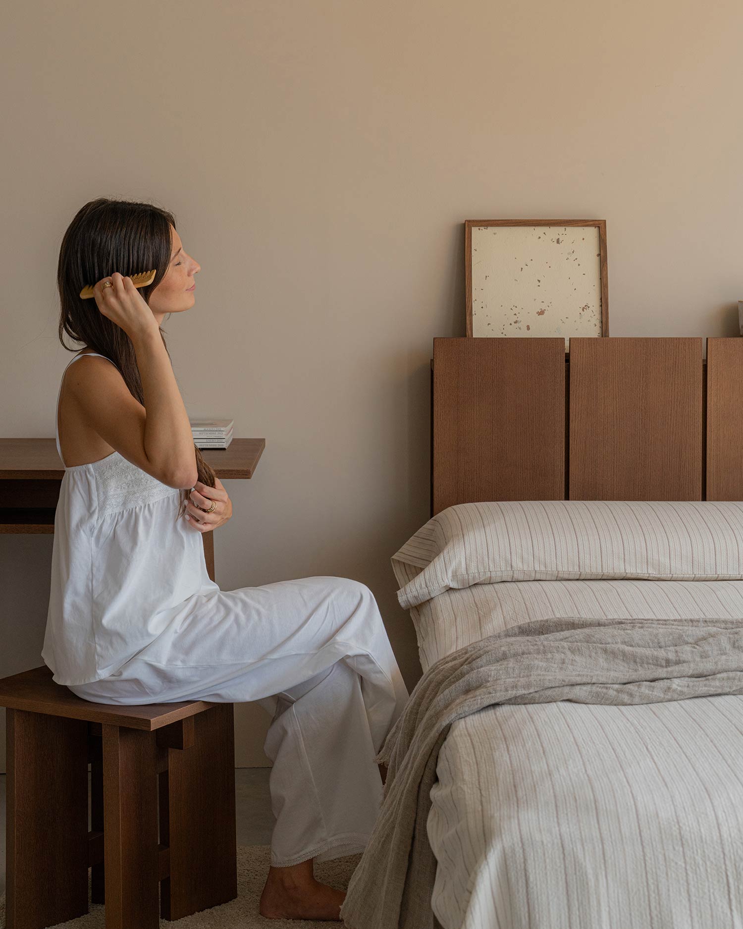 No, porque el diseño panelado deja "respirar" el mueble visualmente. El tono moka aporta calidez y contrasta precioso con ropa de cama clara.