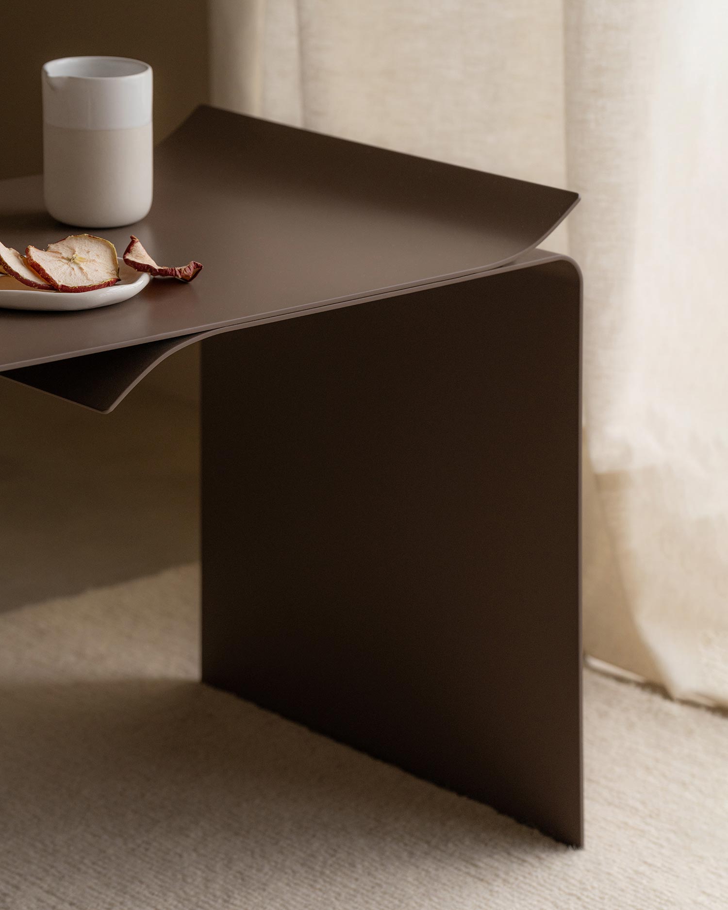 Es sólida y firme. Aunque sea metal, al tener objetos encima o usar posavasos de fieltro o corcho, el uso es tan silencioso y agradable como en madera.