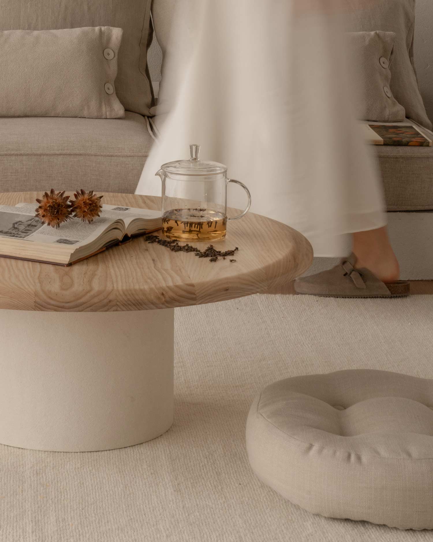 Está tratada y endurecida para mobiliario. Es un material noble con la solidez necesaria para una mesa de centro de diseño duradera.
