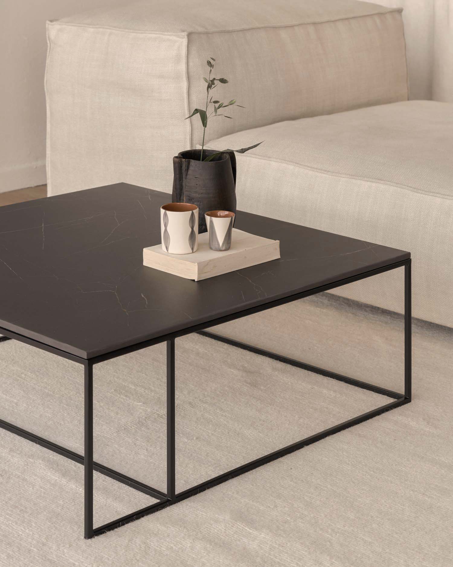 Mesa de centro Petra porcelánico Negro Marquina 80 x 80 cm
