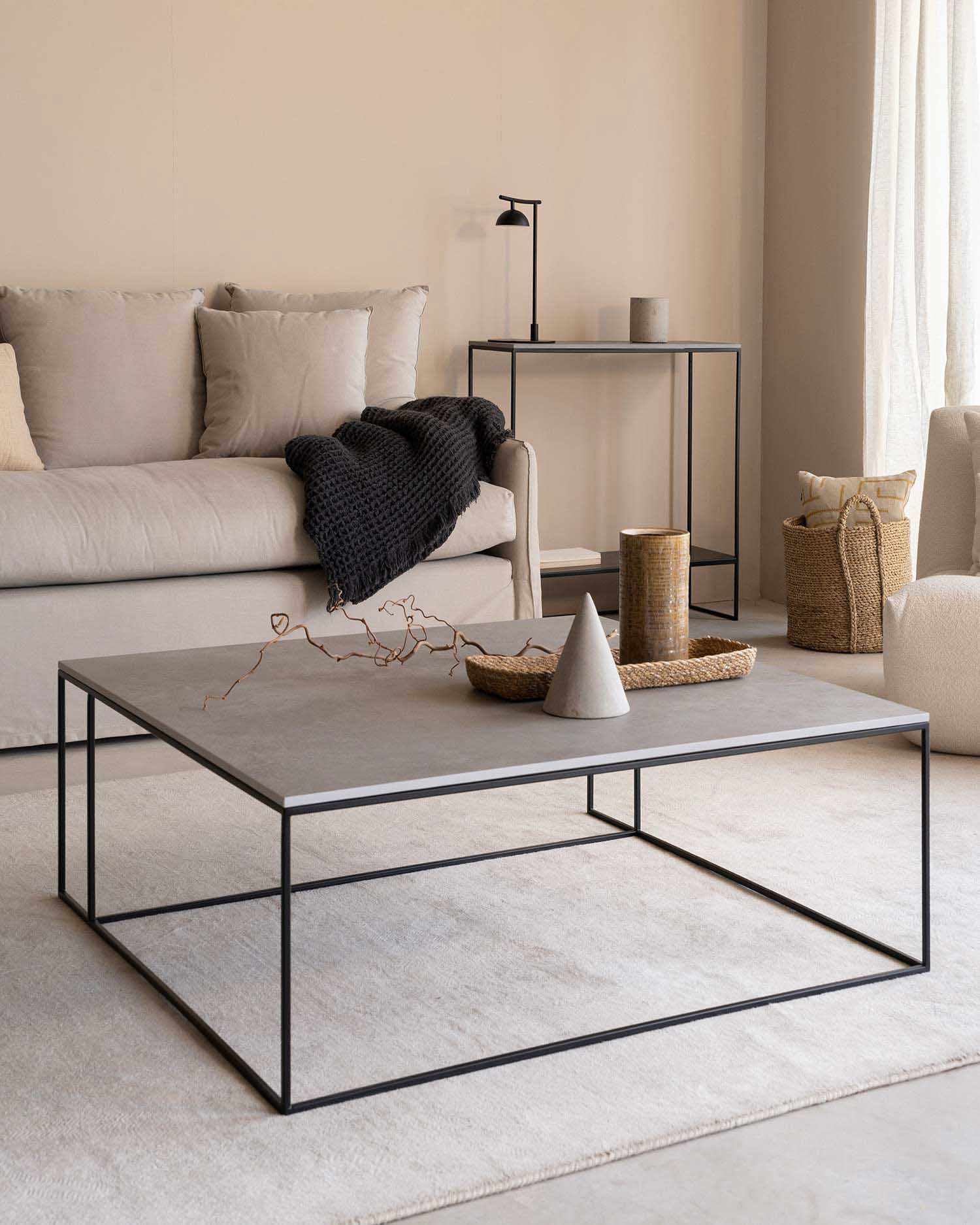 Mesa de centro Petra XL de porcelánico Cemento 100 x 100 cm
