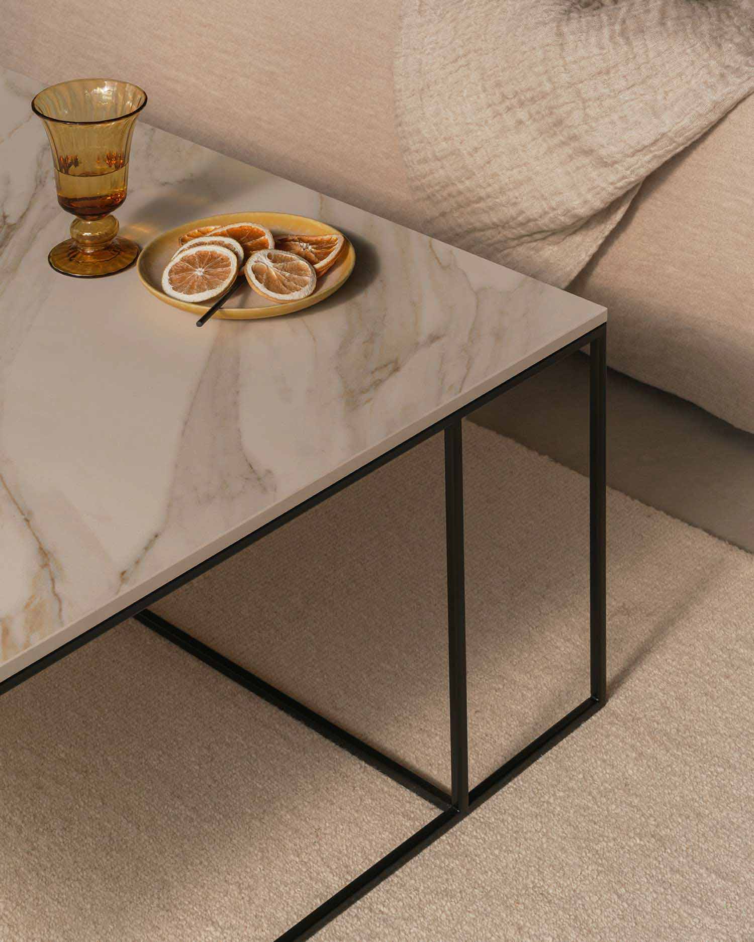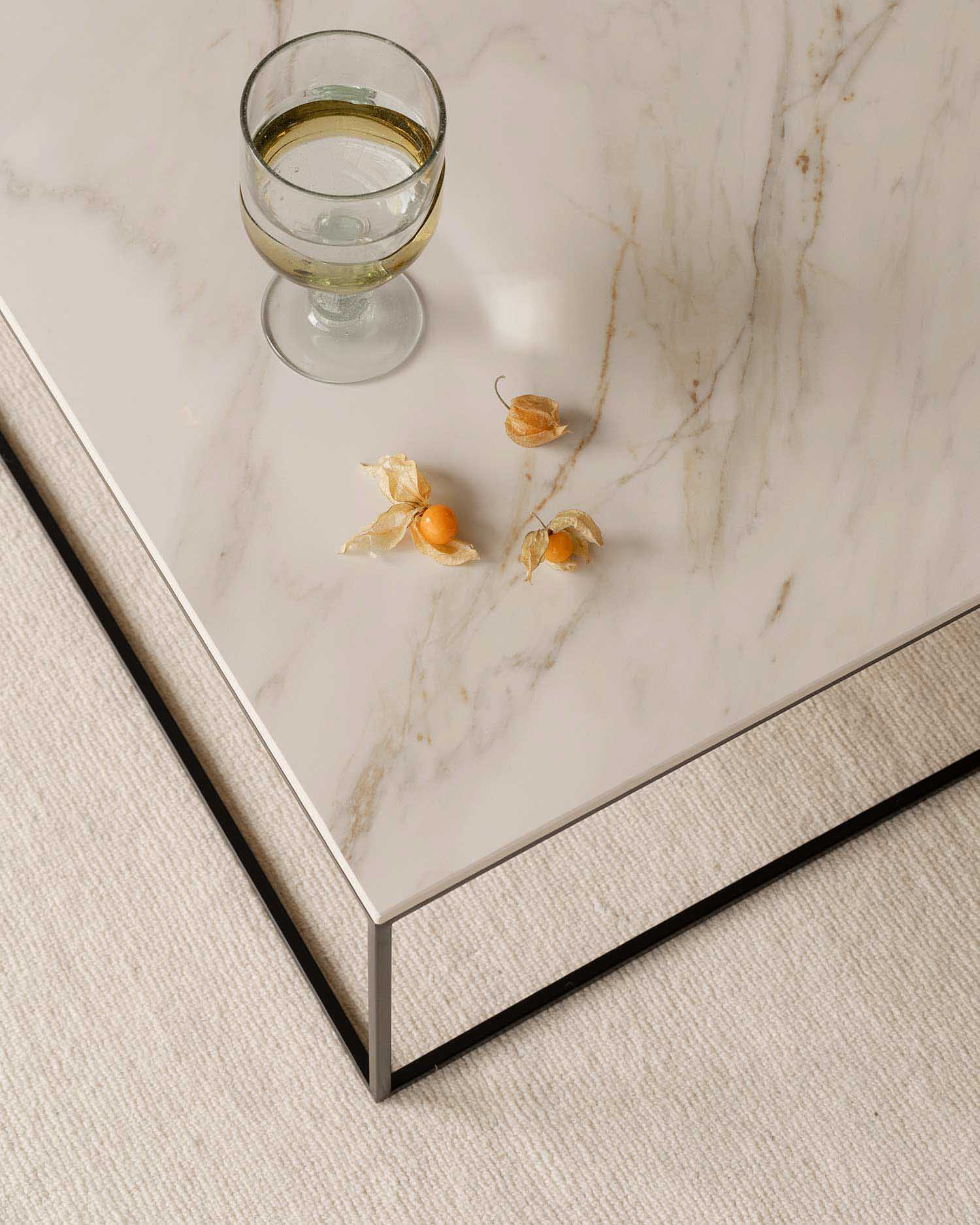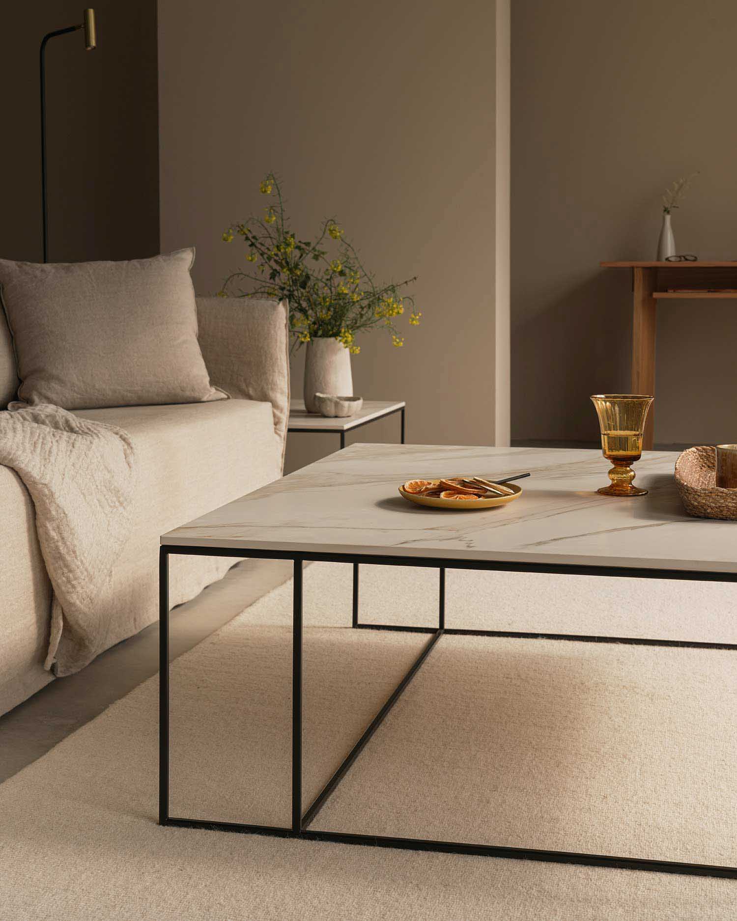 Mesa de centro Petra XL porcelánico Calacatta Oro 100 x 100 cm
