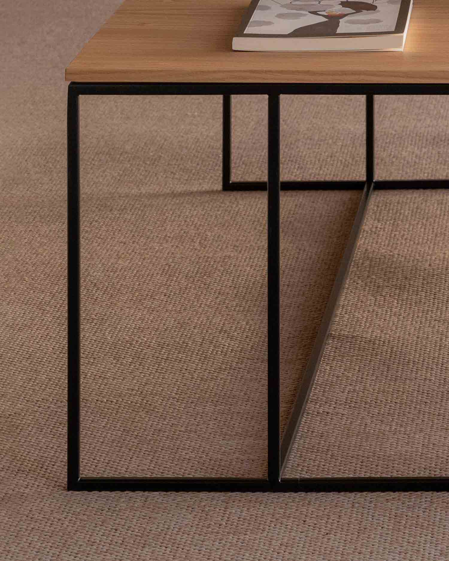 Rechapado de roble acabado natural y estructura metálica negra