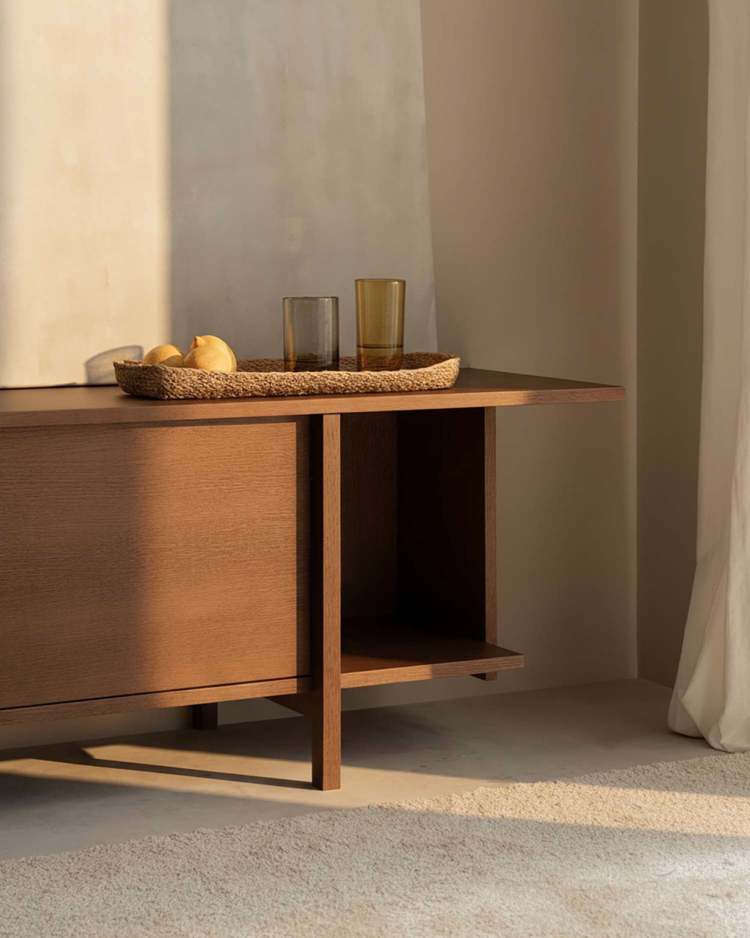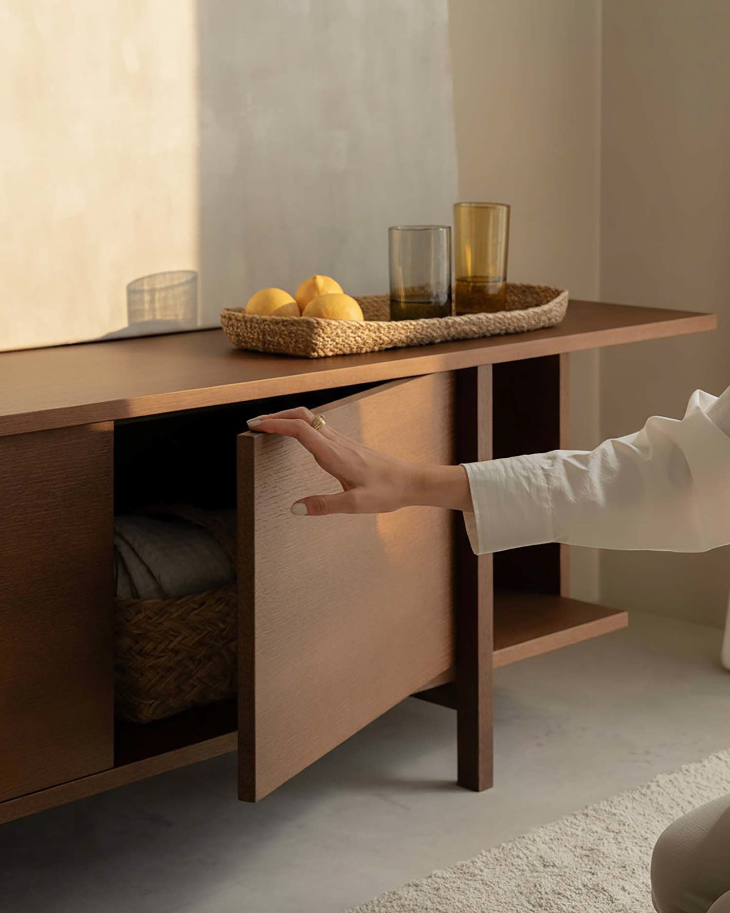Al conservar la textura y veta de la madera, disimula el polvo y las huellas mucho mejor que los muebles oscuros lisos o brillantes.