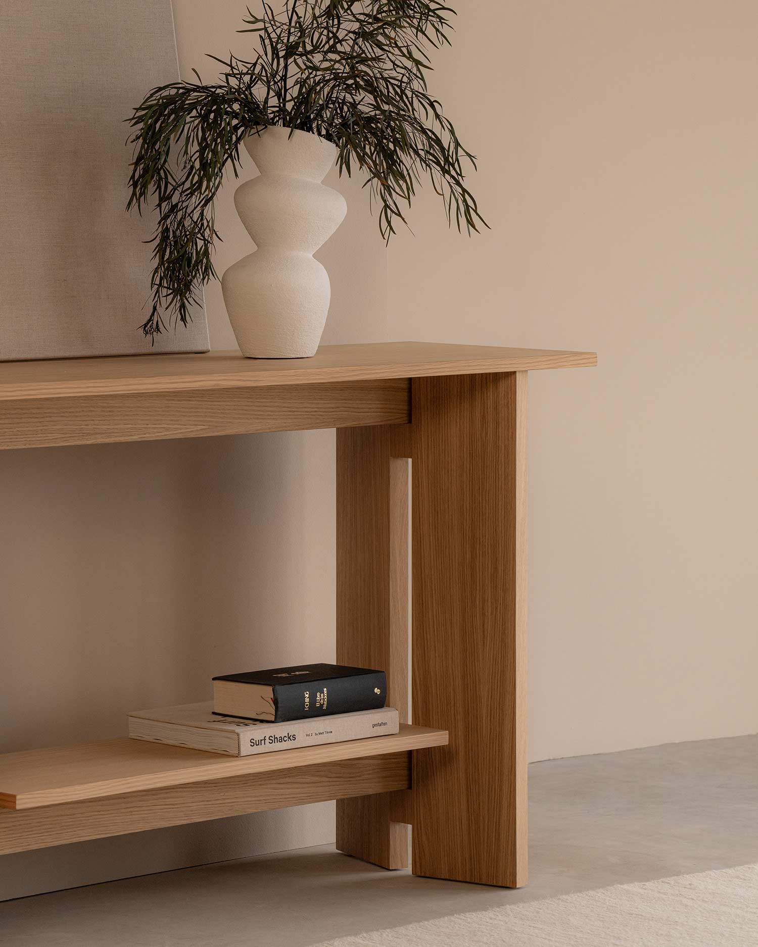 Sin duda. La construcción en rechapado de roble es robusta. Puedes colocar lámparas o jarrones.