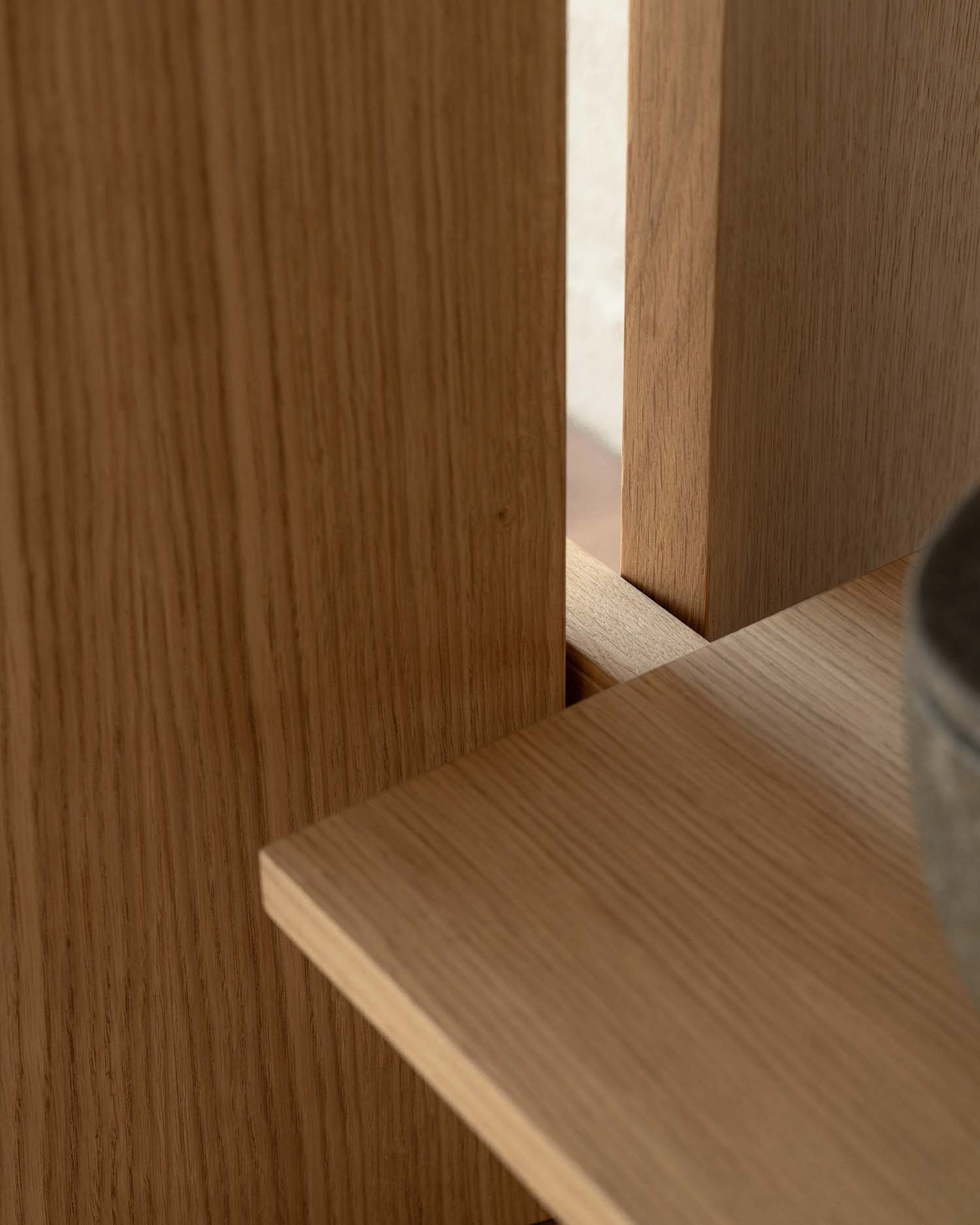 Utilizamos barnices con filtros de calidad que preservan el tono natural del roble, evitando que se oxide o amarillee excesivamente con la luz.