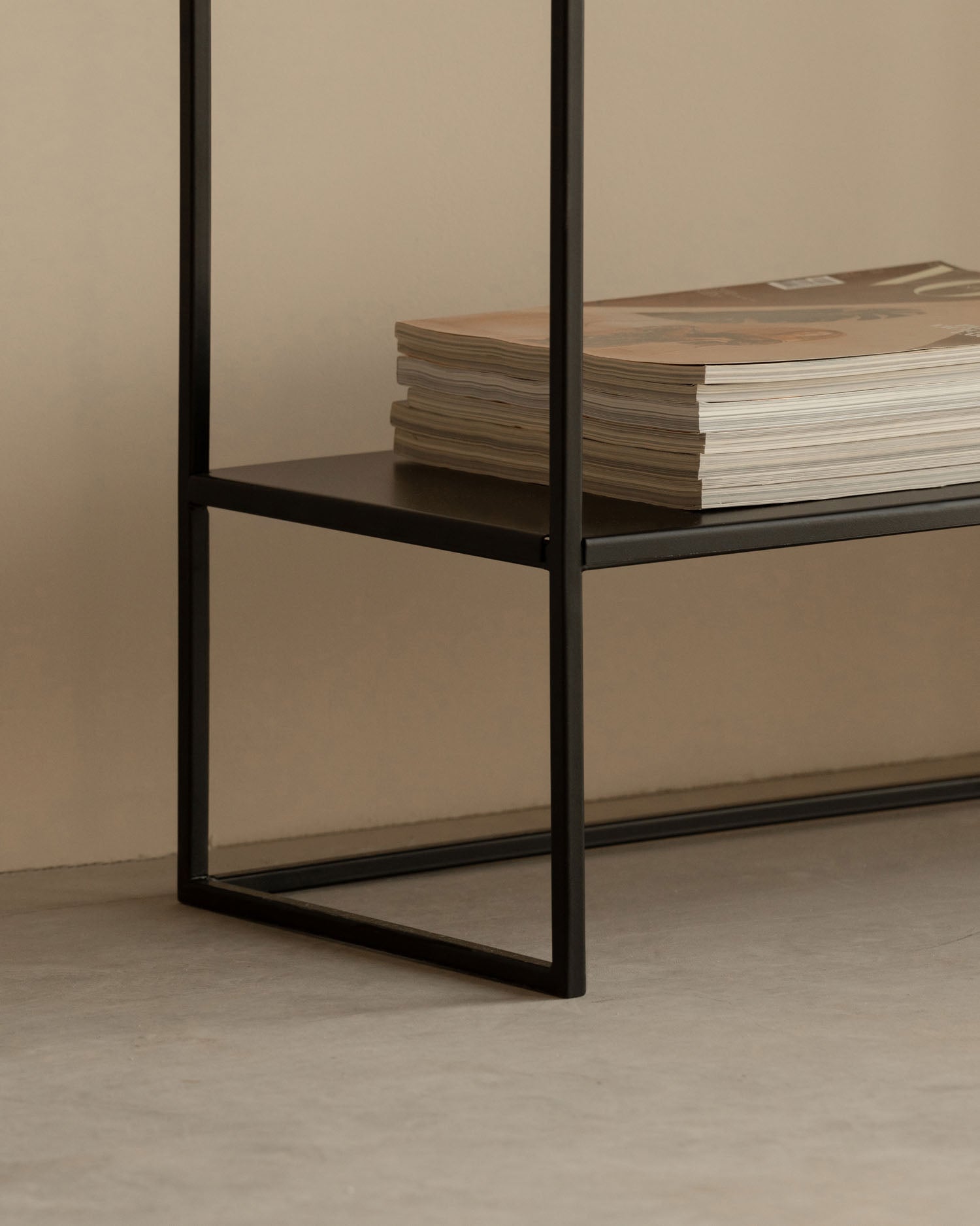 Sí, es chapa metálica robusta soldada a los metal. Puedes apoyar bolsos pesados o decoración sin que se curve, gracias a la calidad del acero.